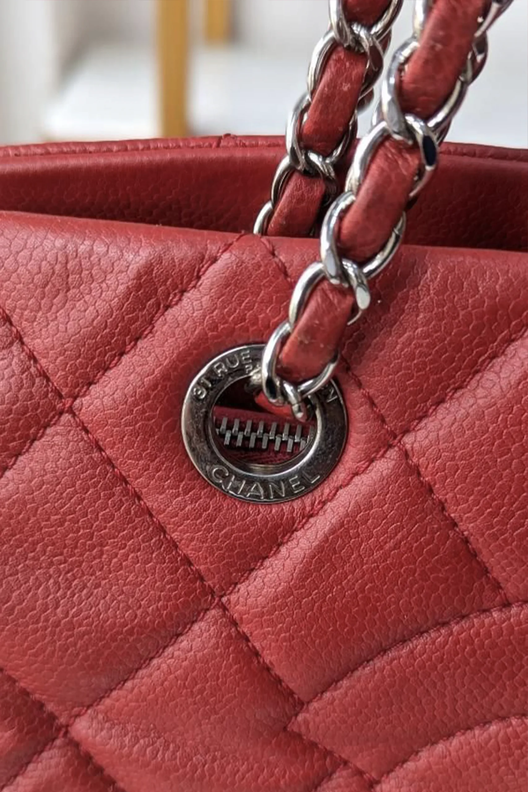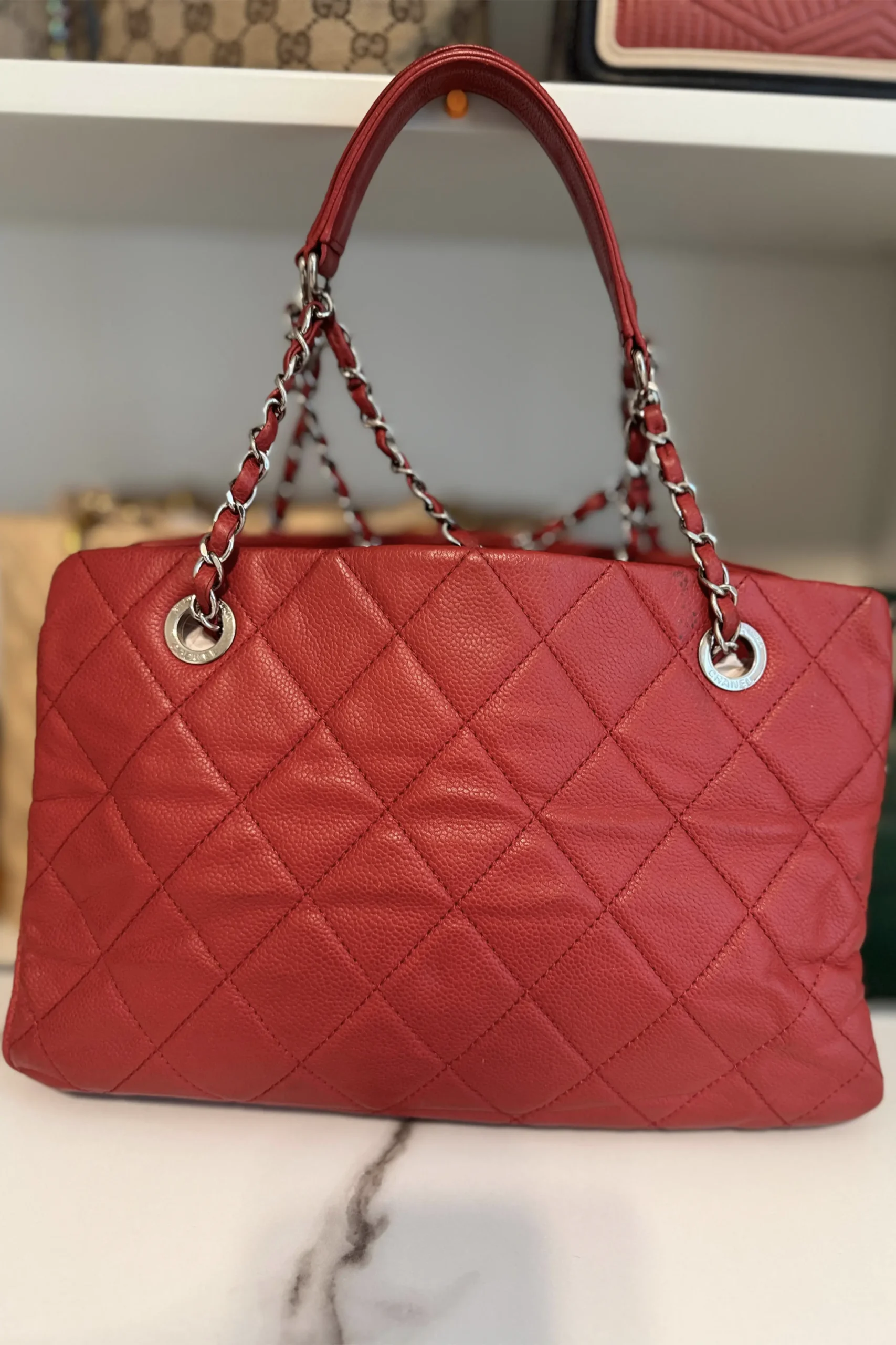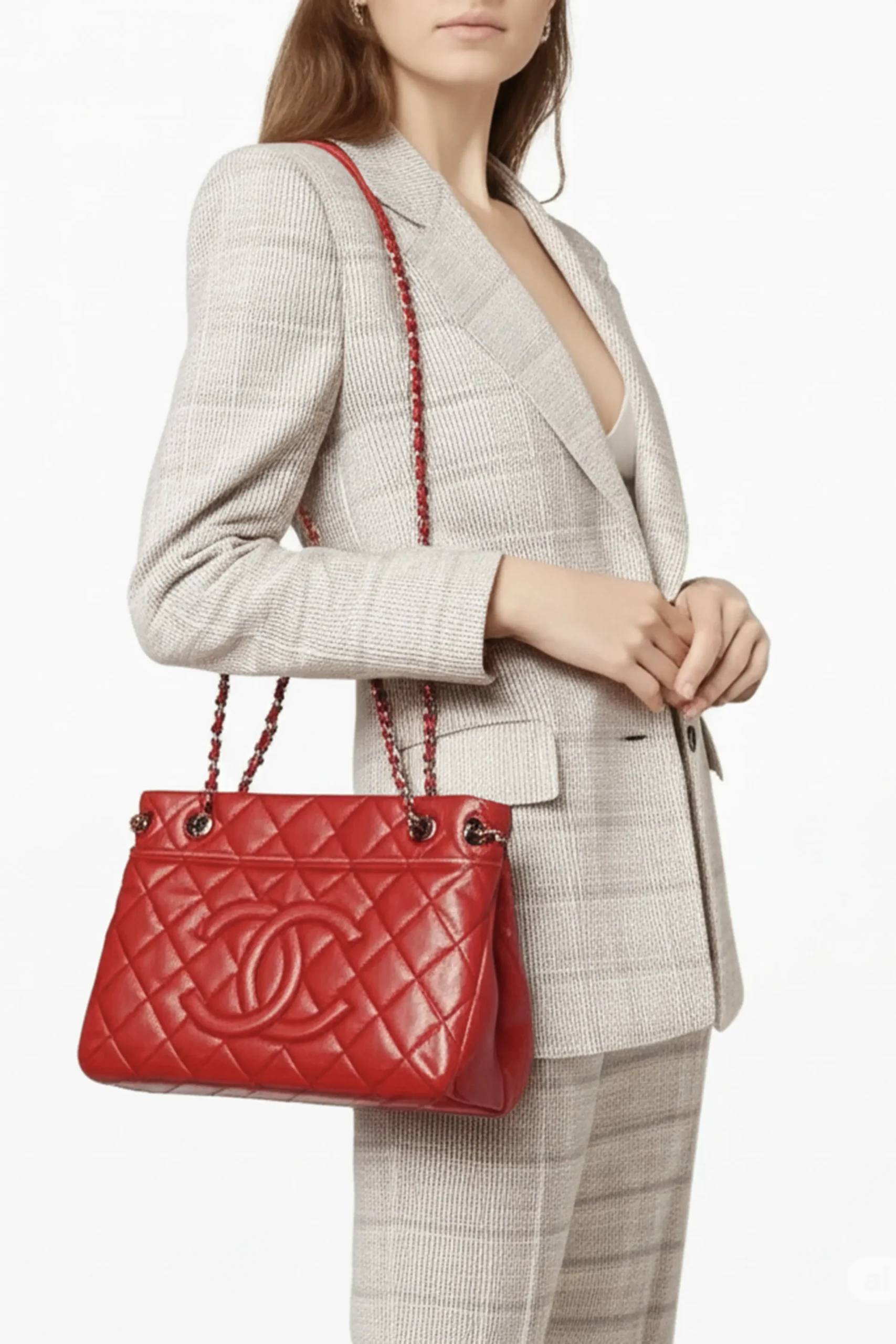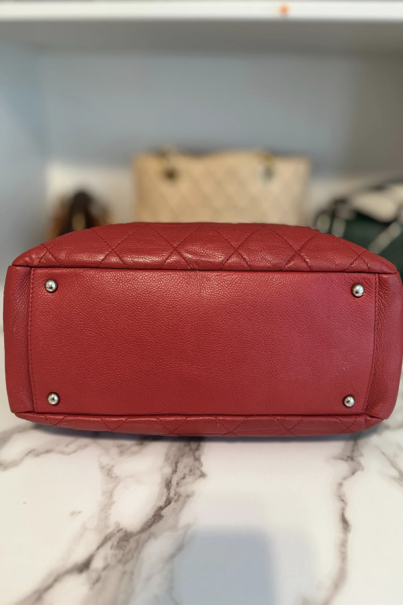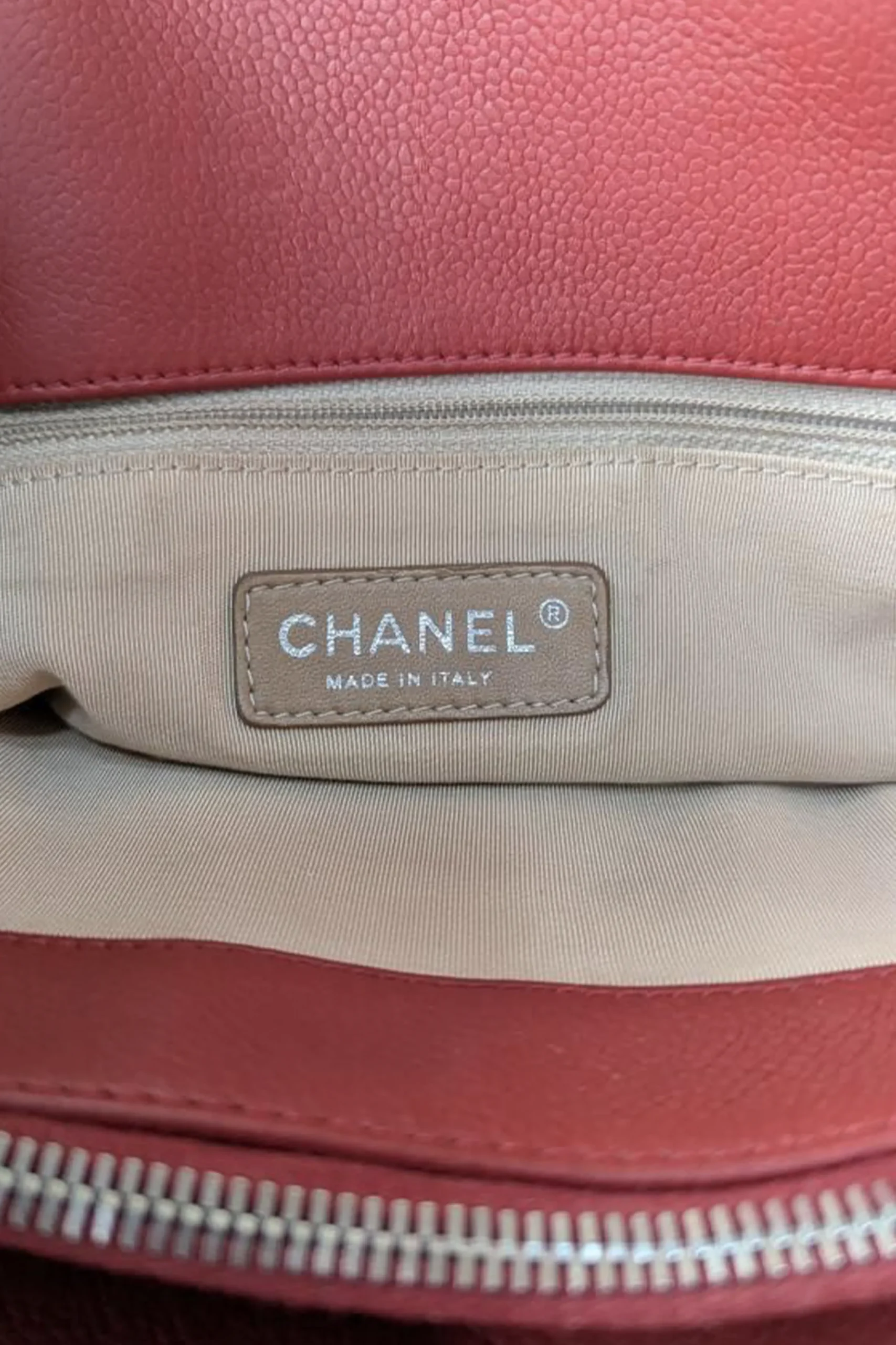 This elegant and stylish CC Timeless Soft Tote by CHANEL, crafted in Italy in 2012 from durable caviar leather, features two open main compartments and a central zipped section. It also includes one interior zip pocket and two exterior pockets with magnetic closures. The bag remains clean overall, showing only minor signs of wear such as light scuffs, creases, and fine scratches on the silver hardware. The exterior is well-maintained with minimal wear and a slight natural slouch to the leather. The interior is spotless and odor-free.